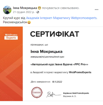 Сертификат Академии WebPromoExperts