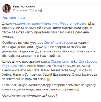 Наша програма оновлюється щонайменше раз на рік. Більшість наших студентів продовжують навчатися разом з академією WebPromoExperts протягом багатьох років, вступаючи на нові курси для підвищення кваліфікації.