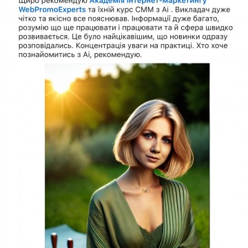 - Студенти курсу захищають свій проєкт, демонструють опрацьовану комплексну SMM-стратегію за допомогою інструментів Штучного Інтелекту, отримують зворотний зв'язок від куратора та рекомендації щодо подальшого розвитку стратегії просування бізнесу/ сторінки