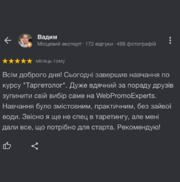 - Отримують зворотний зв'язок від куратора та рекомендації щодо подальшого розвитку як таргетолога